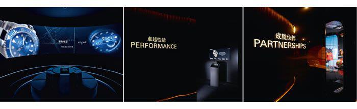 完整的品牌体验呈现于三个空间之中:“觉·发现劳力士”、“动·感受劳力士当代韵律”(一个充满动感、变化万千的空间)、“观·拥抱劳力士追求卓越的精神”。通过各种互动式高科技手段,向来宾展示劳力士品牌的历史内涵及非凡成就。