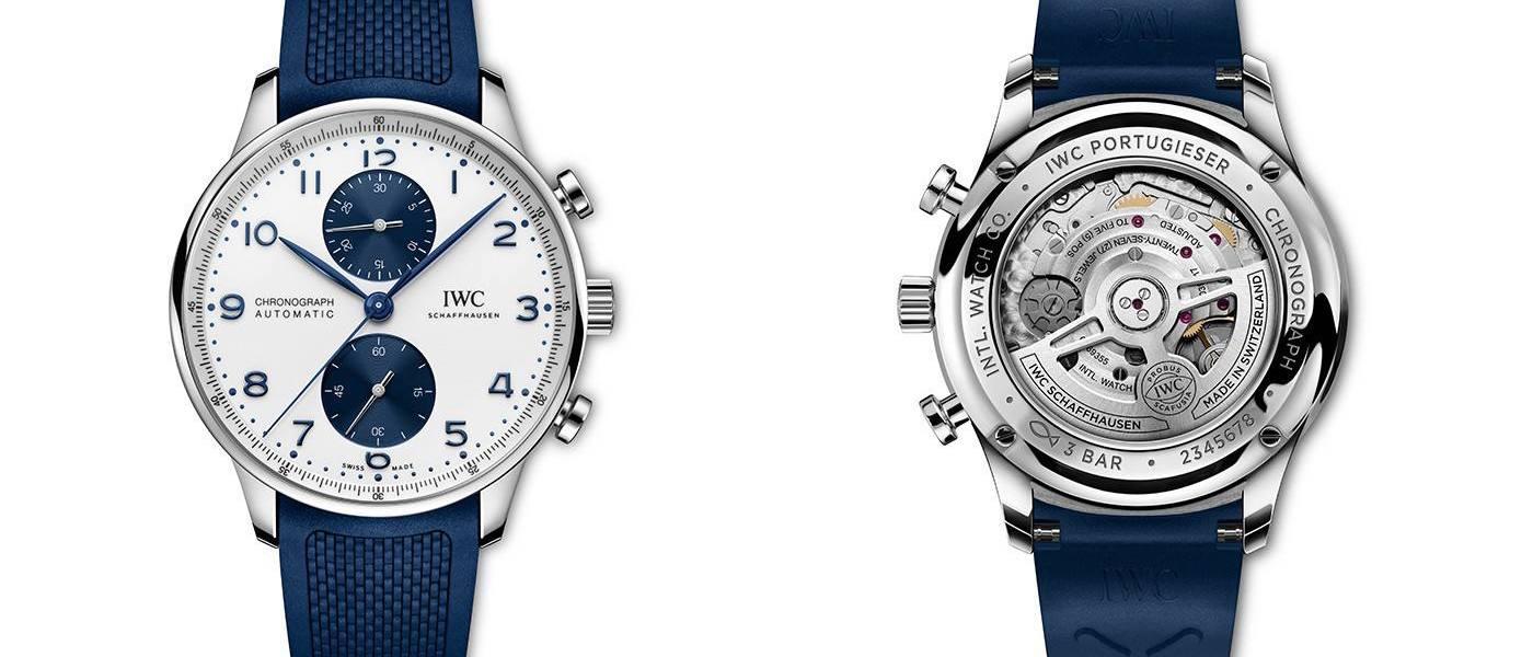 IWC葡萄牙系列计时腕表(型号:IW371620)采用直径41毫米的精钢表壳,白、蓝双色表盘搭配蓝钢柳叶形指针。12点钟位置设有分钟计时盘,6点位置设有小秒针。腕表内部搭载IWC万国表自制69355型自动上链机芯,具备46小时动力储备。该款计时机芯采用经典导柱轮设计,透过蓝宝石玻璃表背尽展机芯风采。灵活耐用的蓝色橡胶表带,即使在炎热夏季佩戴也十分舒适。