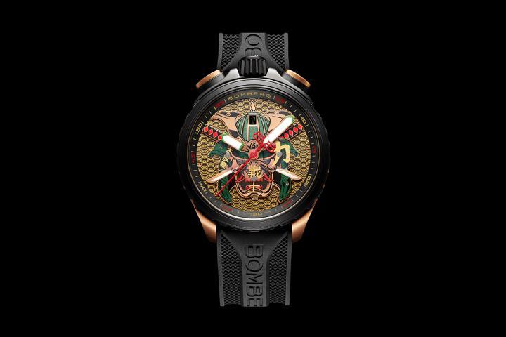 为了进一步彰显武士精神,Bomberg采用黑色PVD镀层搭配玫瑰金色调,营造刚柔并济的视觉冲击: