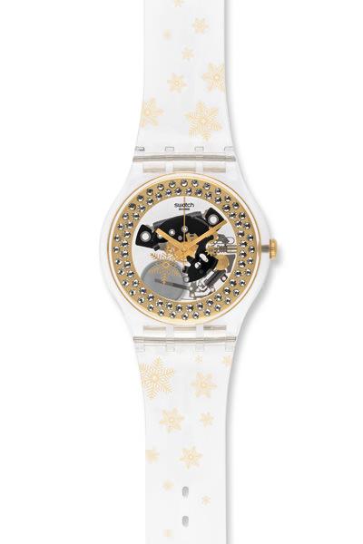 斯沃琪特别为这款腕表搭配同样由金色雪花装饰的连指手套,就以它迎接雪花的降临吧!