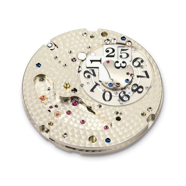 部分表盘以半透明蓝宝石水晶制成,只有外圈、小时显示、分钟显示和小秒盘以黑色银质制成,蓝宝石水晶部分将首款在黑暗中绽放光芒的大日历显示转盘装置尽现眼前。此外,时间及动力储存同样在黑暗中清晰易读。