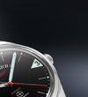 右: 8149.10.0211 (黑色表盘配三角形里的阿拉伯数字时标) 不锈钢表壳和表链 直径 38.8 毫米 防水 5 ATM U-形蓝宝石水晶令人想起以前的塑胶玻璃 Novavit-型表链配粗大链节及展开式表扣 瑞士制造自动日历机芯,经五个位置精细调校 亦有 NATO