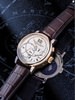... , 腕表以五层结构呈现 , 每一层皆展现独特的装饰风格与富表现力的情感 。 凸缘经圆形拉丝工艺及铑金涂层处理 , 转印数字与分钟刻度精致清晰 , 抛光倒角则进一步强化光感层次 。 日历显示区域以珍珠母贝打造 , 配搭转印字样与手工倒角边缘 。 主表盘采用名为 "莱芒湖 (Leman Blue)" 的色调 , 向日内瓦湖致敬 , 该色调灵感来自 Roger Dubuis 先生学生时期往返日内瓦与沃韦学习制表所见之湖景 。 表盘经漆面处理 , 令色泽更深邃 , 并配有立体时标 、 转印文字及月相周期资讯 。 ...