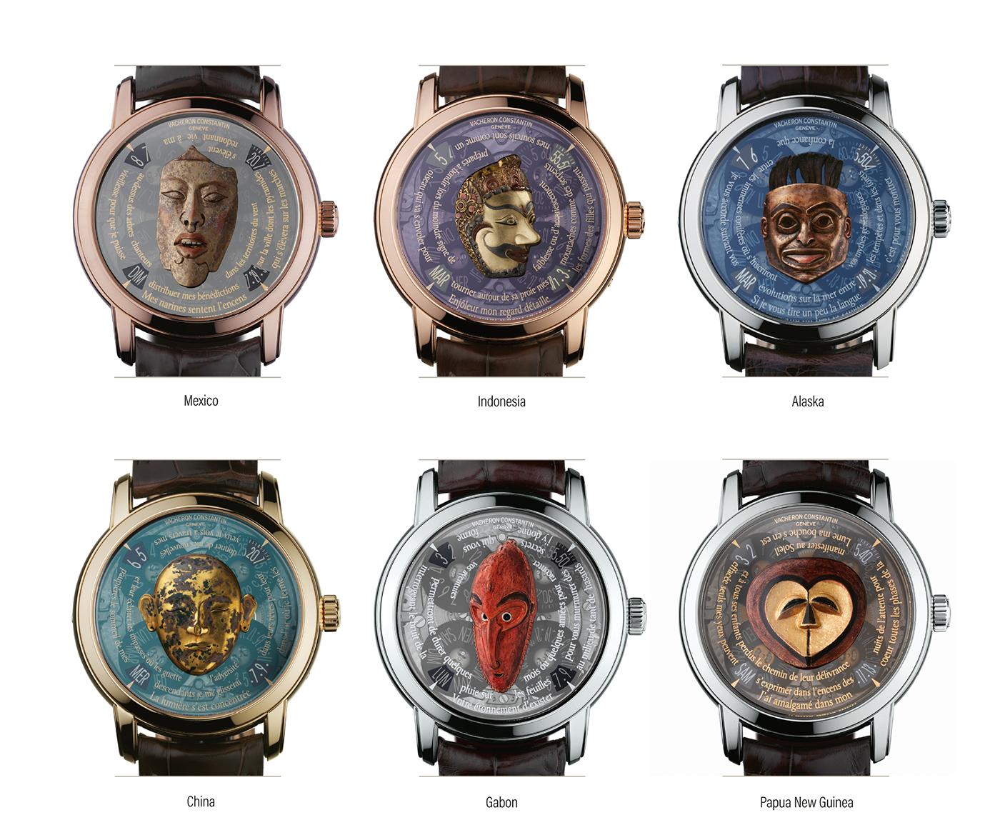 江诗丹顿(Vacheron Constantin)与巴尔比耶-穆勒博物馆(Musée Barbier-Muller)的首次合作诞生了 Les Masques 系列腕表。从 2007 年到 2009 年,在长达三年的交流过程中,江诗丹顿每年都会推出四款新的 Les Masques 系列腕表,限量发行 25 枚。总共推出了十二款卓越的腕表,上面复刻了博物馆藏品中的十二个面具,代表了不同的文明。