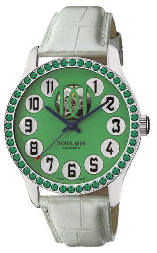 (40毫米)不锈钢机械表配自动ETA 2824机芯。怀旧的Kelly绿色表盘,DM特色数字,商标开口位于平衡摆之上,扫秒表针以及棍形指针,表圈镶有60颗相称的翡翠,白色珍珠色鳄鱼皮表带。